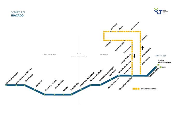 Em agosto, a previsão é lançar o edital para o trecho que vai do centro (estação Conselheiro Nébias) até o centro histórico de Santos, até o Valongo, como é conhecida essa área. Estamos na fase final do projeto executivo e acredito que em março deva estar concluído. Por volta de junho/julho esperamos já ter a licença prévia ambiental para a obra e, em fins de dezembro ou início de janeiro, o inicio de obra desse projeto de extensão do VLT.