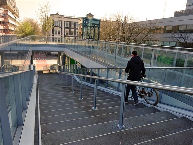 A área em que a ponte foi construída tem uma alta densidade de construções. Assim, o projeto teve que "espremer" a estrututura nas áreas disponíveis. E como não havia espaço para rampas cicláveis os arquitetos do escritório Cepezed - autor do projeto - incluíram escadas dotadas de sulcos laterais para que as pessoas possam empurrar as bikes escada acima. Elevadores permitem o acesso de pessoas com deficiência e idosos, que podem inclusive levar suas bicicletas. Algumas pessoas se queixam das escadas, mas outras vêem vantagens, como a impossibilidade de passagem de scooters sobre a ponte.