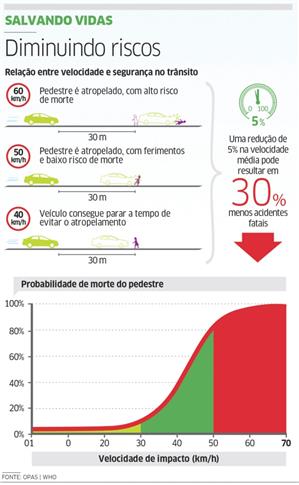 uma redução de 5% reduz em 30% o risco de acidentes fatais (Fonte: OMS)