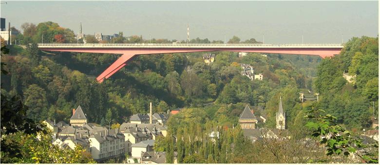 Vista geral da ponte vermelha, em Luxemburgo. Foto:Wikiwand