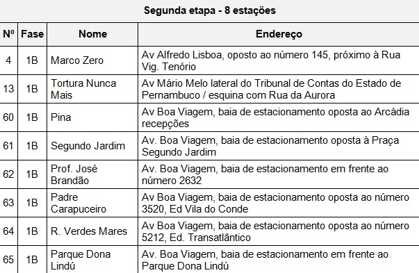 Segundo os organizadores, o sistema do Bike PE será implantado em quatro etapas, entre setembro e dezembro de 2017. A cada mês serão instaladas 20 novas estações com 200 bicicletas. A previsão é que ao final desse prazo estejam disponíveis 80 estações e 800 laranjinhas.