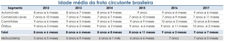 É o que mostra um estudo realizado pelo Sindipeças (Sindicato Nacional da Indústria de Componentes para Veículos Automotores) sobre a frota circulante de 2017. Os dados foram divulgados neste mês de abril de 2018.