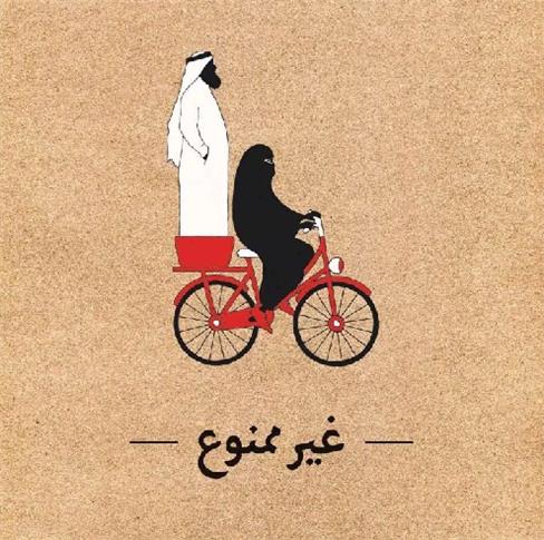 A ideia de andar de bicicleta sob supervisão de um homem não caiu bem. Muitas mulheres do país foram até as redes sociais para comentar como a sugestão era ridícula. O designer gráfico Mohammed Sharaf ilustrou o absurdo da ideia na imagem “Segundo a Lei”, onde zomba da ideia de um mahram pegando carona com uma mulher numa bicicleta. Veja abaixo: