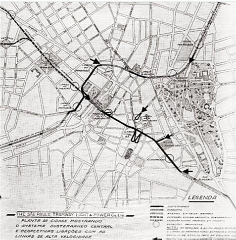 A cidade já possuía cerca de 800 000 habitantes, e a proposta apresentada pela Light de dotar a área central de transporte rápido e subterrâneo colidia com os conceitos do Plano de Avenidas, de Francisco Prestes Maia, que, numa visão diversa, propunha que a expansão urbana da capital ocorresse com o apoio de avenidas radiais, unidas por grandes e sucessivos anéis perimetrais, que, segundo seu autor, exigiriam investimento de menor porte se comparado ao transporte “rápido” subterrâneo. Maia defendia esse modelo por entender que a cidade não possuía nem densidade, nem recursos que justificassem no curto prazo, a implantação da proposta apresentada pela Light.