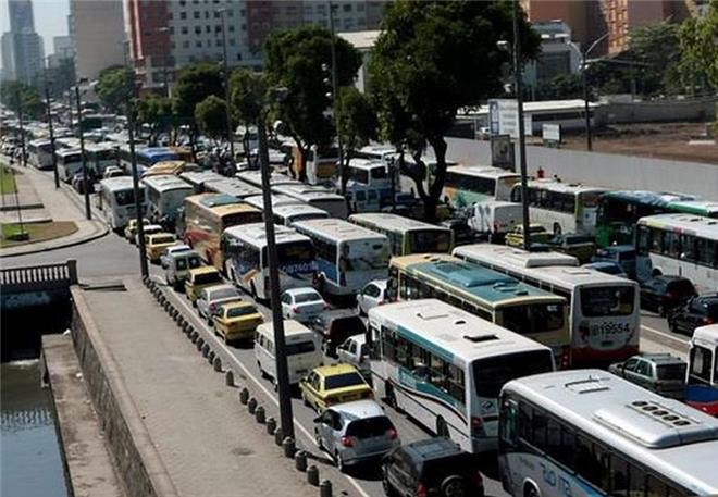 Ônibus presos em congestionamentos no Rio de Janeiro