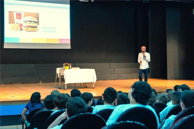 Apresentação: analogia do carro com o bigmac para explicar o conceito de externalidades Foto: Gustavo de Almeida | Colégio Santa Maria