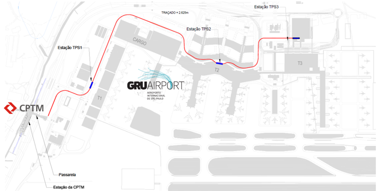 Nesta terça-feira (29), em coletiva de imprensa no Palácio dos Bandeirantes, o governador de São Paulo João Doria (PSDB) anunciou a construção de uma linha de monotrilho para interligar a estação Aeroporto da Linha 13-Jade da CPTM aos três terminais de embarque do Aeroporto Internacional de Guarulhos.
