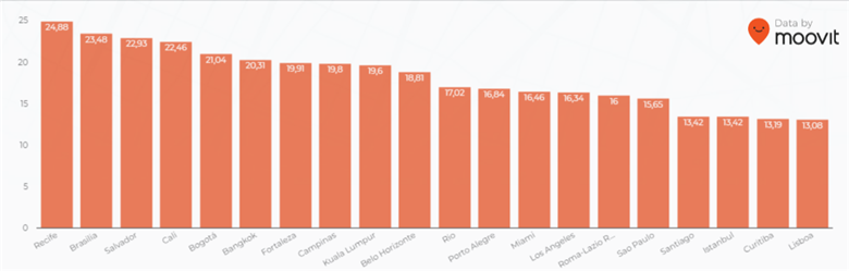 Tempo médio de deslocamento em cidades do mundo e do Brasil Reprodução Moovit