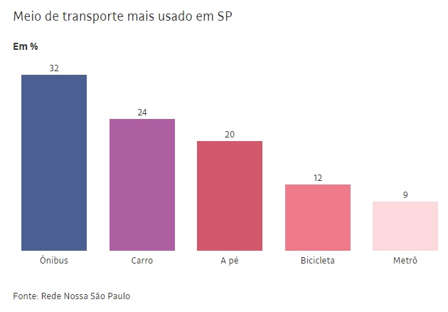 Modos de mobilidade mais usados na cidade de SP. Fonte: Rede Nossa São Paulo