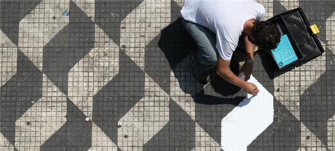Como um Buster Keaton atual, o artista Rodrigo Machado não fala, vai logo à ação. Abre sua maleta de ferramentas e, por exemplo, agachado rente ao piso do Viaduto Santa Ifigência, no centro da capital paulista, vai repondo uma a uma as pastilhas soltas do belo e histórico pavimento (que, diga-se, não resistirá muito mais à frenética pancadaria dos skates). Ou, em outro ponto da cidade, Rodrigo aparece (a cena é sempre registrada em vídeo), abre uma escada e sobe para limpar a fuligem no alto da placa de um ponto de ônibus, observado por um incrédulo senhor que espera sua condução (veja no vídeo abaixo).