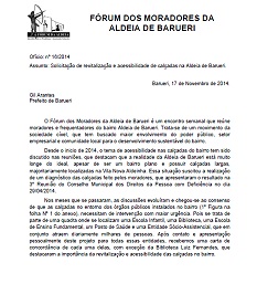 Leia o ofício enviado pelos moradores à Prefeitura de Barueri