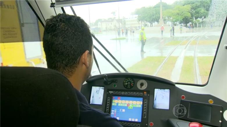 Cabine de comando do VLT carioca: bonde repaginado - Foto: Reprodução TV Globo