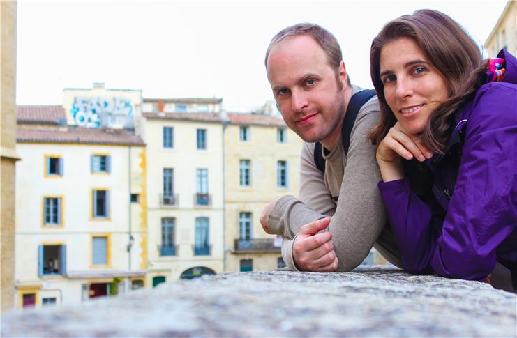 Isabel e Tiago em Montpellier, cidade histórica da França. Foto: Divulgação