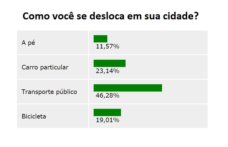Nos comentários, os leitores mais satisfeitos com seu modo de transporte são os fãs da bicicleta (19,01%). Veja o que eles dizem: "Meu deslocamento se divide em: 60% bike, 20% ônibus, 10% carro e 10% a pé. E me sinto muito feliz!", diz Guilherme Bernet. Daniel Júlio, de Recife, afirma que "a bicicleta se tornou um meio de transporte essencial no dia a dia", e que na capital pernambucana as linhas de ônibus são pouco "inteligentes", tornando o trajeto mais longo e demorado do que ir pedalando.