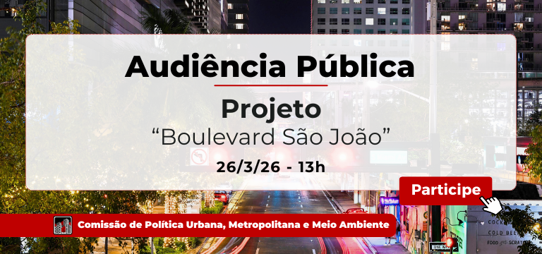 O debate sobre o projeto da Prefeitura de requalificação da Av. São João (Centro) foi convocado pela Comissão de Política Urbana, Metropolitana e Meio Ambiente da Câmara Municipal de São Paulo, e atende a um requerimento da vereadora Marina Bragante (Rede).