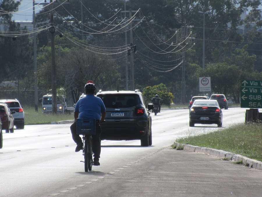 Pedestres e ciclistas sem espaço seguro na via que margeia o Autódromo.