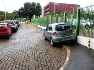 Mesmo a área central, “moderna”, é altamente hostil a quem passa a pé, especialmente em razão da farra motorizada, com carros espalhados por todos os cantos (calçadas, canteiros e outros locais proibidos).