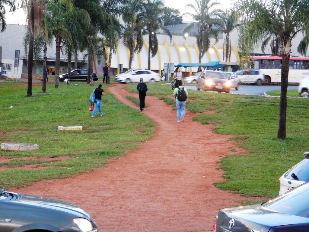 A região da 513/713 Norte é o retrato fiel do abandono e da inacessibilidade. Além da falta de pontos de travessia com faixa e semáforo, os canteiros e as calçadas ficam completamente tomados por carros e os usuários de ônibus ficam espremidos, acuados no meio dos carros à espera do transporte na volta para casa.