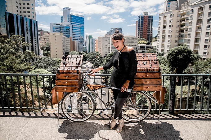Se os clientes não vão até você, que tal ir até os clientes? Foi o que fez a empreendedora Flávia Ferreira, dona da marca de acessórios F. Ferreira. Há pouco menos de um mês, ela colocou na rua uma ideia diferente: uma bicicleta customizada para vender as peças da marca por São Paulo.