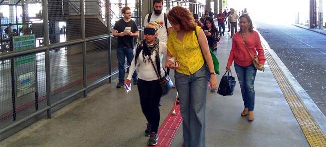 Para sensibilizar a sociedade e o poder público, pessoas que passavam pela estação Vilarinho do BRT Move, em Belo Horizonte, foram convidadas a se locomover vedadas ou em cadeiras de rodas para que pudessem vivenciar as dificuldades vividas diariamente por pessoas cegas e cadeirantes, principalmente no acesso e uso cotidiano do transporte coletivo.