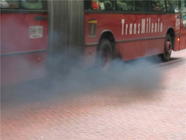 Ônibus emite fumaça preta ao passar na área de Las Águas Foto: Mike