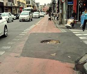 Buraco com 20 cm de profundidade na ligação entre o bairro do Bom Retiro e a Alameda Nothman Foto: Mobilize Brasil