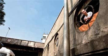 Morador em antiga casa de bombas na Ponte das Bandeiras Foto: Eduardo Knapp/Folhapress