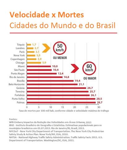 Mais de 90 países já fixam 50 km/h como limite em seus centros urbanos e outras 36 nações preveem 60 km/h. Mas, o Código Brasileiro de Trânsito ainda fixa a velocidade máxima nas vias urbanas em 80 km/h. No entanto, governos estaduais e municipais podem regulamentar limites superiores ou inferiores de velocidade. O diretor-geral da OMS, Tedros Adhanom Ghebreyesus, declarou que “não há desculpa para inação. Este é um problema com soluções comprovadas. Este relatório é um apelo aos governos e parceiros para que tomem medidas muito maiores para implementar essas medidas ”.
