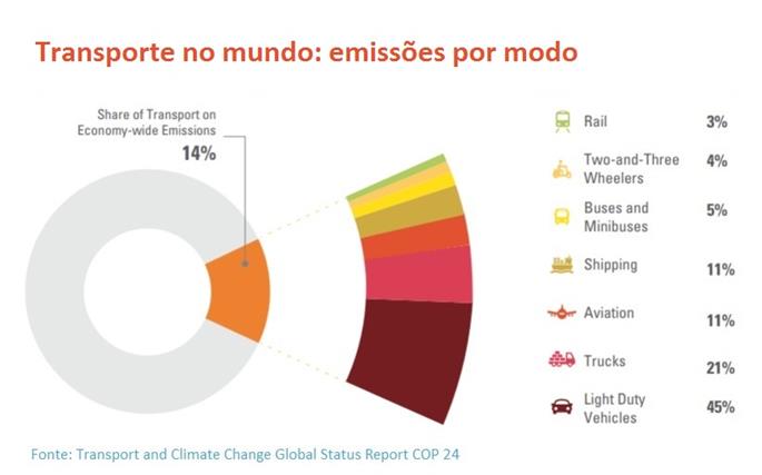 *Obs.: Texto editado para correção de título e informação. Os gráficos do relatório da COP 24 mostram uma participação de 14% do setor de transportes nas emissões totais de carbono. 12/12/2018. às 15h