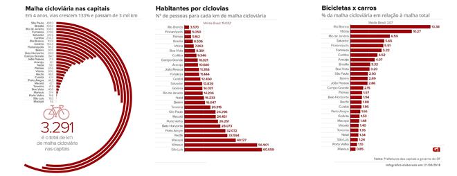 Ciclovias no Brasil Clique para ampliar os gráficos em formato PDF Fonte: G1