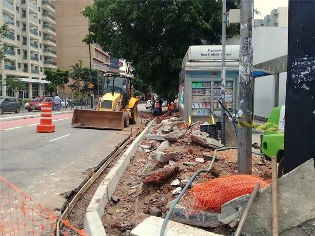 Agora a Prefeitura está realizando a obra de ampliação do passeio, com novas guias, sarjetas e galerias pluviais, o que resultará na ampliação da calçada em cerca de um metro. A iniciativa merece elogios  - por consolidar mais espaço para a mobilidade a pé  - mas as obras têm gerado problemas, especialmente para cadeirantes, que são obrigados a circular pela rua enfrentando o trânsito da área.