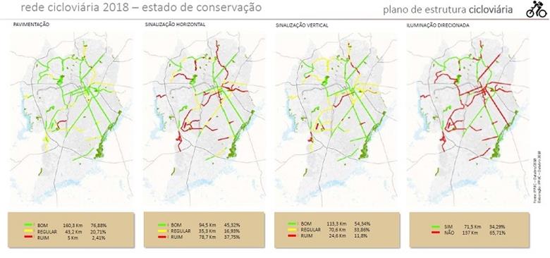 Gráficos mostram estado de conservação das ciclovias em Curitiba