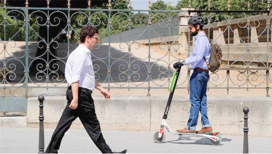 Patinetes e pedestre dividindo o mesmo espaço Foto: Mobilize Brasil