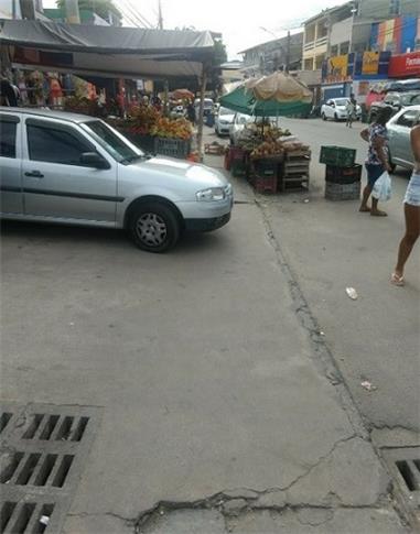 A realidade na periferia é bem outra: carro estacionado na calçada, bancas e outros obstáculos em São Cristóvão. Foto: Arquivo pessoal