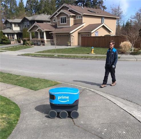 Em março, ao caminhar, um pedestre viu algo estranho no subúrbio de Silver Firs, em Seattle. Um robô de seis rodas com o logo da Amazon Prime em sua carapaça azul-celeste percorria as calçadas e as calçadas, assistido por um representante da empresa. "Fiquei surpreso, animado e muito curioso", diz Matt Bratlien, sócio da Net-Tech, uma empresa de serviços de TI nas proximidades de Bellevue.