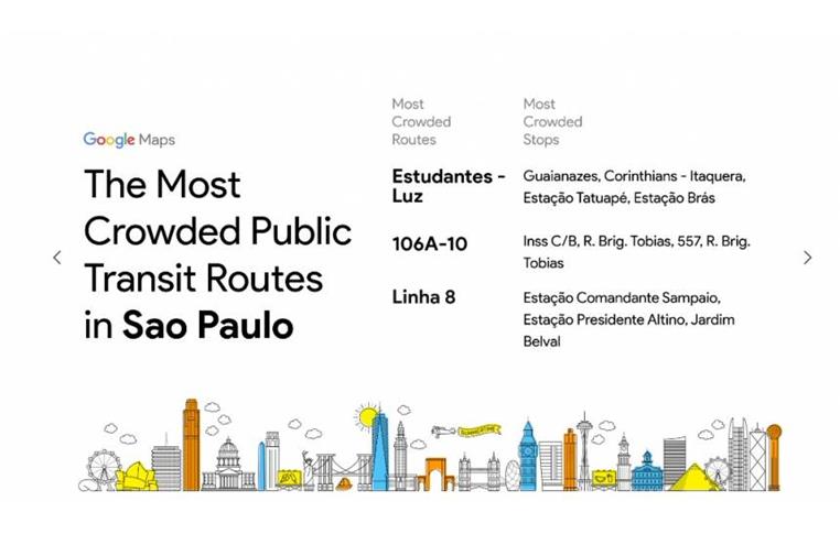 A Google também listou as rotas de transporte público e as paradas mais lotadas de São Paulo, que incluem os pontos Corinthians-Itaquera, Estação Comandante Sampaio e muitas outras.