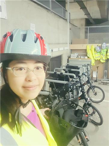 Veronica Sesoko no bicicletário da prefeitura, onde trabalha Foto: Arquivo pessoal
