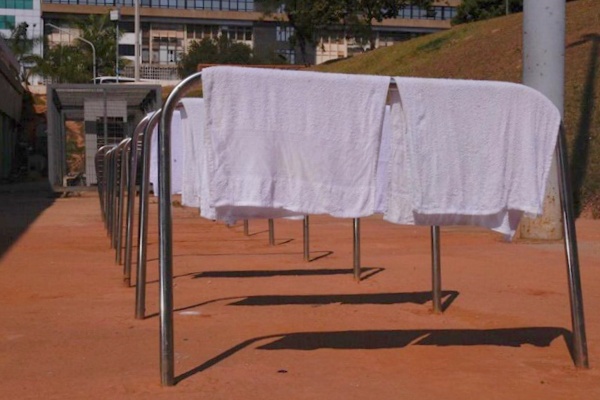 Paraciclos são usados como varais para secagem de roupas Foto: Allane Moraes/Metrópoles