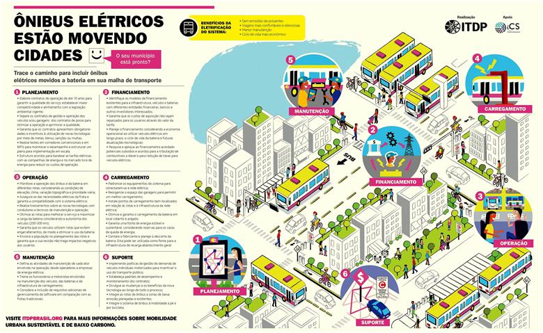Infográfico do ITDP mostra etapas para a eletrificação da frota de ônibus elétricos Fonte: Reprodução ITDP