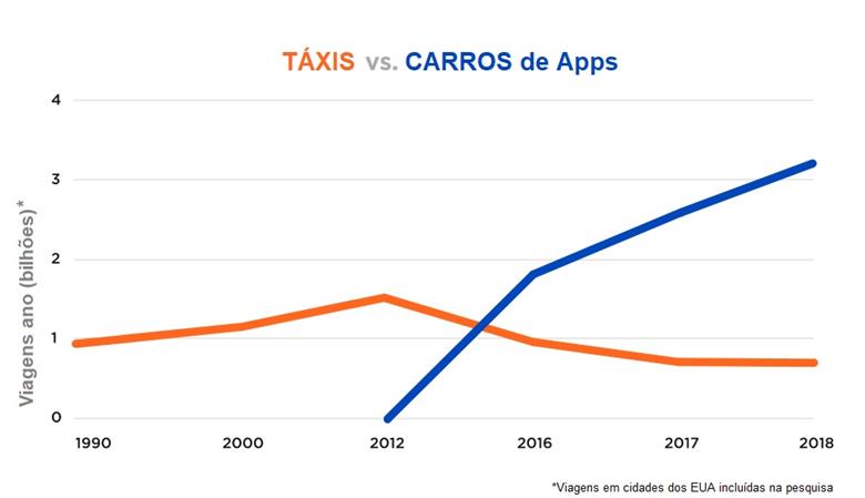 O estudo lembra que o número de viagens de aplicativos hoje supera amplamente as viagens de táxi nas cidades dos EUA, ao passo que a regulamentação desses carros ainda é um trabalho em andamento.