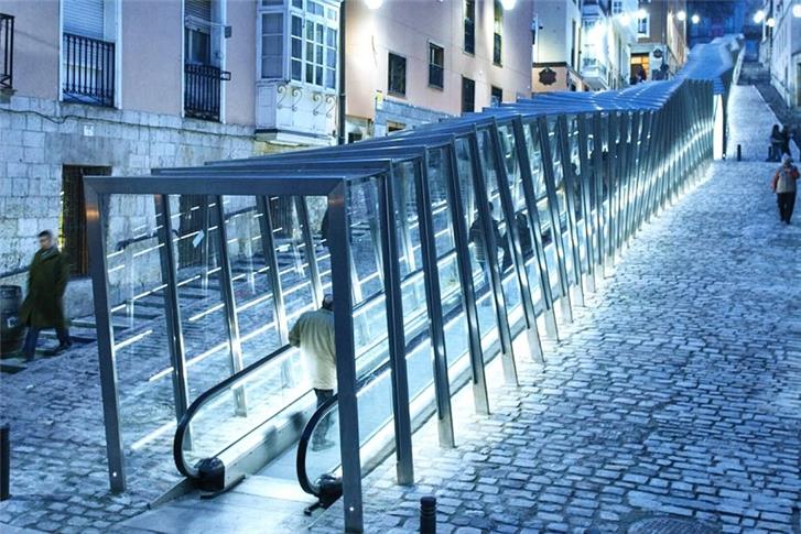 Calçadas rolantes externas já são realidade em locais como Santander, na Espanha, onde estão instaladas não para substituir outro modo de transporte público, mas para facilitar o acesso ao funicular da cidade.
