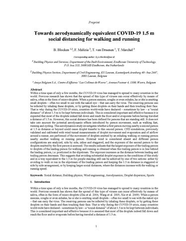 A engenheira Linsey Marr, especialista em transmissão aérea de doenças virais diz que a questão de saber se as pessoas podem ou não ser infectadas por ciclistas ou corredores ainda é duvidosa. Mas, de qualquer forma, ela concorda com a sugestão de Blocken para os caminhantes e corredores, de guardar um espaçamento maior, na frente ou atrás de outra pessoa.