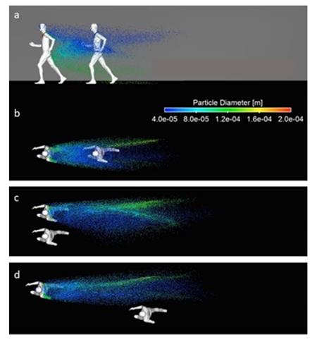 Em seguida, combinaram os dados resultantes do experimento com estudos existentes sobre como as gotículas respiratórias se espalham durante um exercício. É importante observar que o estudo não tenta estimar o risco de infecção por exposições durante o exercício; apenas descreve a aerodinâmica das partículas respiratórias.
