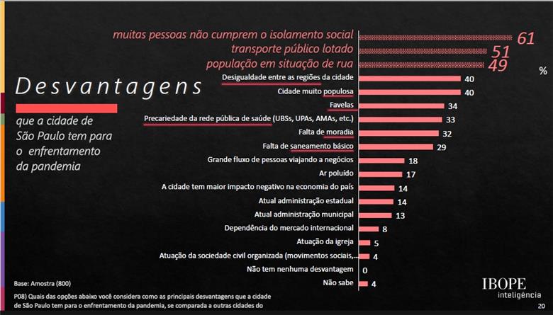 O levantamento, que foi realizado via internet pelo Ibope, procurou apurar as percepções dos moradores da cidade em relação à crise da saúde gerada pelo novo coronavírus.