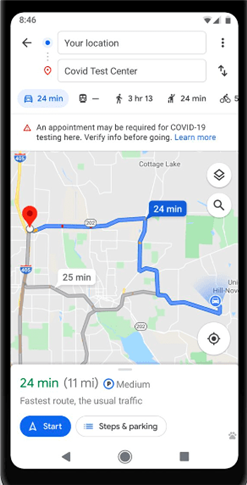 Quando a pessoa cria um trajeto na plataforma, o Google Maps avalia seu ponto de partida, chegada, e todo o caminho entre eles. Agora, com base em dados atualizados dos departamentos de trânsito, a plataforma vai exibir alertas para esse trajeto escolhido, informando se há restrições de circulação e sobre a obrigatoriedade de uso de máscara no transporte público, por exemplo.