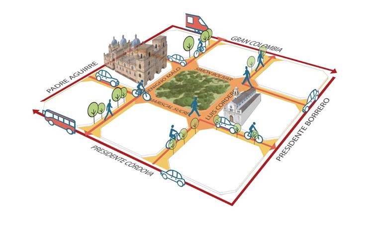 Outra ação envolve a criação de ruas completas, ou seja ruas em que os espaços atendam igualitariamente a todos os modos de transporte: pedestre, cadeirante, ciclista, transporte público e o automóvel. Em Cuenca, cerca de 80% dos espaços da rua são destinados aos carros, mas estes transportam menos do que 30% das pessoas. Se colocarmos uma faixa de ônibus, uma ciclovia, se aumentarmos as calçadas, conseguimos equilibrar esse jogo. E neste momento de crise de saúde isto é ainda mais urgente. Estamos começando no entorno de mercados e instituições de saúde, onde circulam mais pedestres. Infelizmente, por motivos históricos, as calçadas de Cuenca são estreitas, sem acessilidade, e precisam ser alargadas e adequadas às pessoas com mobilidade reduzida. Há calçadas com 1,20 metro ou até menos do que isso, porque alguns imóveis 'invadem' a calçada. Fazendo essas alterações, pouco a pouco, esperamos atrair mais pessoas para caminhar e convencer as pessoas a deixarem seus carrões na garagem.