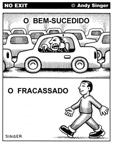 Nesse cenário, no imaginário popular, a pessoa que caminha, seja por necessidade ou mesmo prazer, é tida como alguém menor, sem ambição ou pressa, desqualificada, excluída ou até... esquisita. O imaginário coletivo está convencido por estes valores e o próprio pedestre costuma achar-se menor, um estorvo para a cidade e as suas urgências. Como exemplo, lembro aqui uma situação bastante comum: o carro está entrando ou saindo da garagem e a pessoa a pé que está passando na calçada dá aquela “corridinha” pra sair logo do trajeto do motorista, pra não incomodar, uma ação de um pensamento tipicamente subalterno e invertido: primeiro os veículos, depois as pessoas, claro sintoma dessa doença de inversão dos valores.