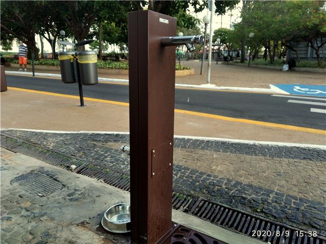 Por exemplo, foram instalados bebedouros públicos, compactos e modernos, com desenho contemporâneo, que atendem tanto às pessoas como aos cães que as acompanham.