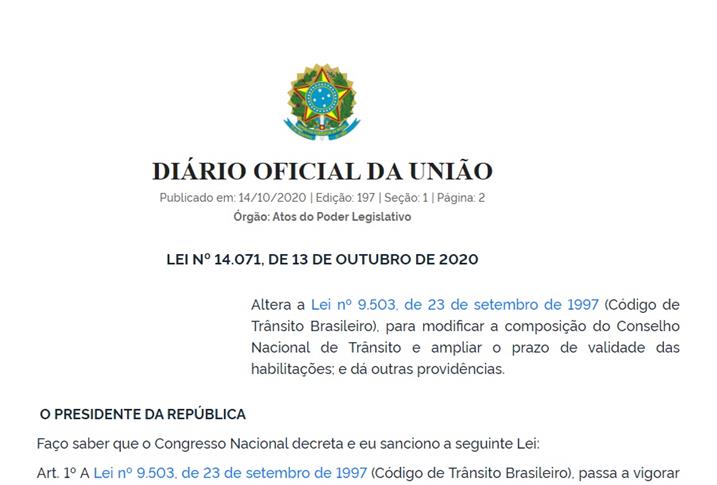 A Presidência da República sancionou ontem (13) as mudanças no Código de Trânsito Brasileiro, conforme alterações propostas pela Câmara e pelo Senado. O texto foi publicado hoje (14) no Diário Oficial da União. Na sanção, Jair Bolsonaro vetou o dispositivo que proíbe a circulação de motociclistas no corredor que se forma entre os carros, em alta velocidade, para avançar no trânsito. O texto aprovado pelo Congresso permitia que esse tipo de circulação ocorresse "em velocidade compatível com a segurança". As novas normas entram em vigor em abril de 2021.
