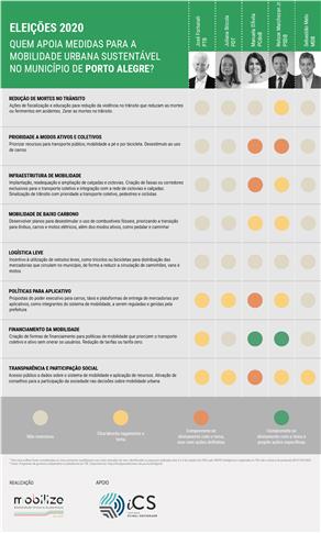 De forma geral, as propostas de Manuela D'Ávila (PCdoB) e Nelson Marchezan Jr.(PSDB) apresentam visões mais avançadas da mobilidade urbana não motorizada, com planos para estimular o uso da bicicleta e da caminhada, embora nenhum dos dois programas apresente metas objetivas - numéricas - de ciclovias, calçadas, ou para a expansão e melhoria do transporte público.